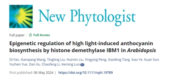 近日,taptap188官网入口罗克明教授课题组在New Phytologist在线发表了题为Epigenetic regulation of high light-induced anthocyanin biosynthesis by histone demethylase IBM1 in Arabidopsis的研究论文,揭示了组蛋白去甲基化酶的IBM1在光诱导花青素合成中的表观遗传调控新机制,为完善对植物花青素合成精准适应环境光照条件机理的认识提供了新的层面。