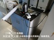大功率电器共用插排,线路混乱;房间内未配置灭火器。