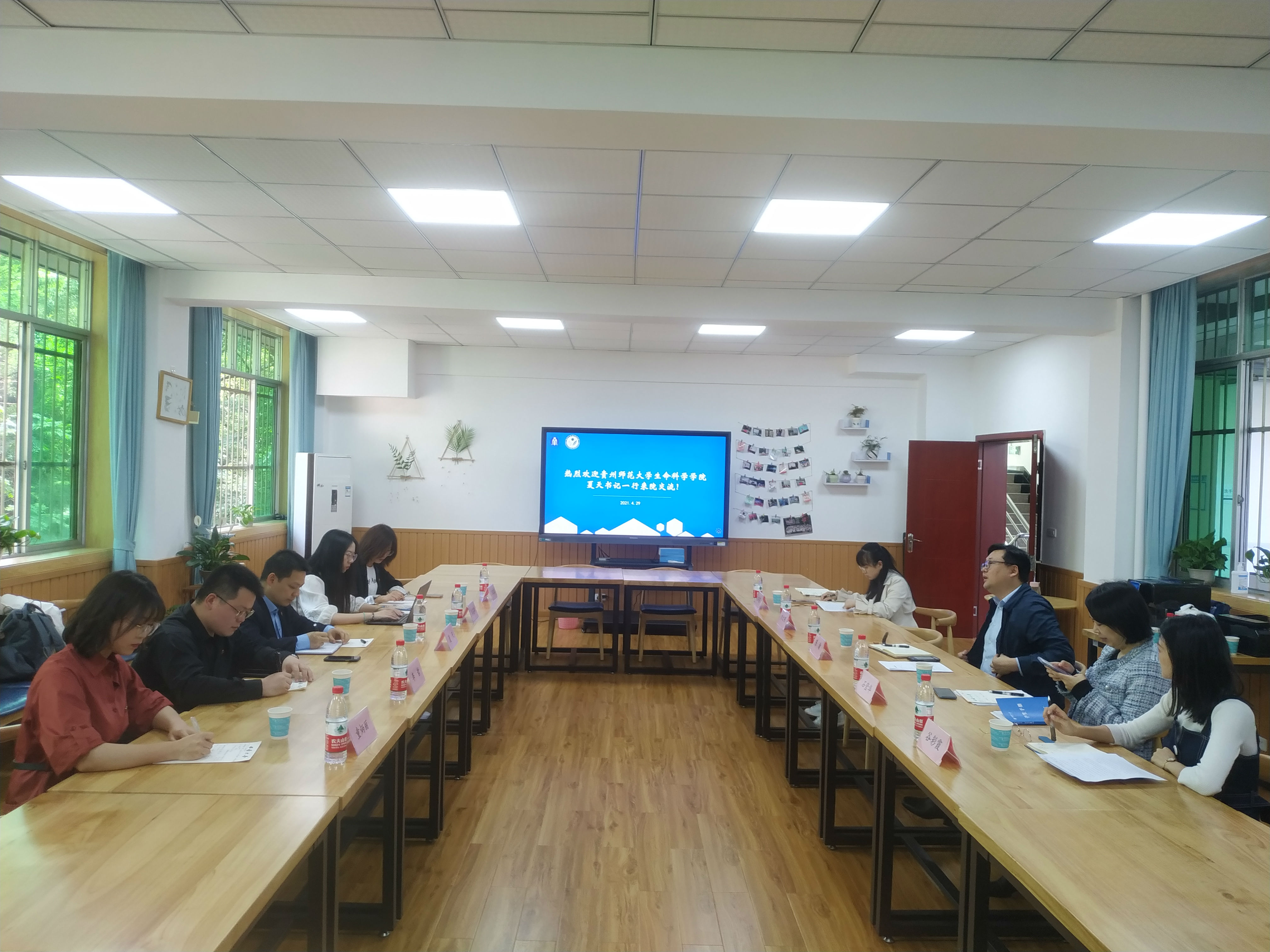 陈渝书记首先对夏天书记一行来访表示热烈欢迎,随后从学院概况、双一流学科建设、本科生和研究生培养、国际学生培养、毕业生就业等方面对我院做了详细介绍,石莹华书记就学院开展的党史学习教育、“每周一学”、“两早一练”等具体工作进行深入介绍。夏书记介绍了贵州师范大学生科院基本情况,并就该院学科建设、人才培养、毕业生就业和升学等方面进行交流。参会人员还就学生工作中遇到的其他具体问题进行了深入交流和探讨。