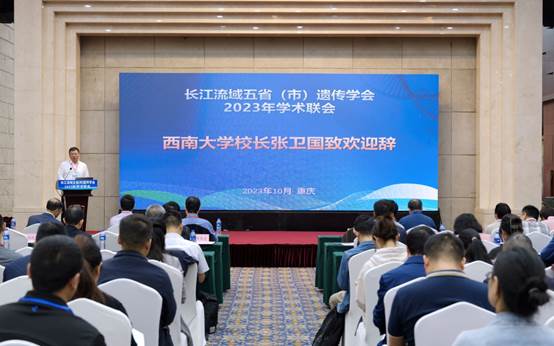 由重庆市遗传学会、安徽省遗传学会、湖北省遗传学会、湖南省遗传学会、江西省遗传学会共同主办的“长江流域五省(市)遗传学会 2023 年学术联会”于2023年10月11-13日在重庆北碚海宇温泉大酒店召开。在12日上午举行的开幕式上,taptap188官网入口校长张卫国、重庆市科协二级巡视员牛杰、中国遗传学会理事长薛勇彪先后致辞。第十四届全国政协常委、湖南省政协副主席、南华大学校长张灼华出席。来自五省(市)部分高校、科研院所、医院等单位的近300名遗传学科研教学人员和研究生参加本次会议。