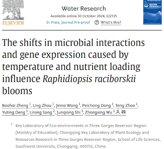 taptap188官网入口吴忠兴教授课题组在WATER RESEARCH(中科院一区Top,IF=11.4)在线发表了题为The shifts in microbial interactions and gene expression caused by temperature and nutrient loading influenceRaphidiopsis raciborskiiblooms的研究论文,本文在不同温度和磷浓度条件下进行了微宇宙模拟实验,利用微生物行为生态模型、WGCNA和网络分析等多元化的分析方法,探讨了拟柱孢藻藻华发生期间蓝藻与细菌之间的相互作用,揭示了蓝藻与非蓝藻细菌之间以利他主义为主导的复杂互动模式和微生物在应对压力时采用的自我调节策略。本研究为水生环境管理和生态恢复提供了有力的理论支持。